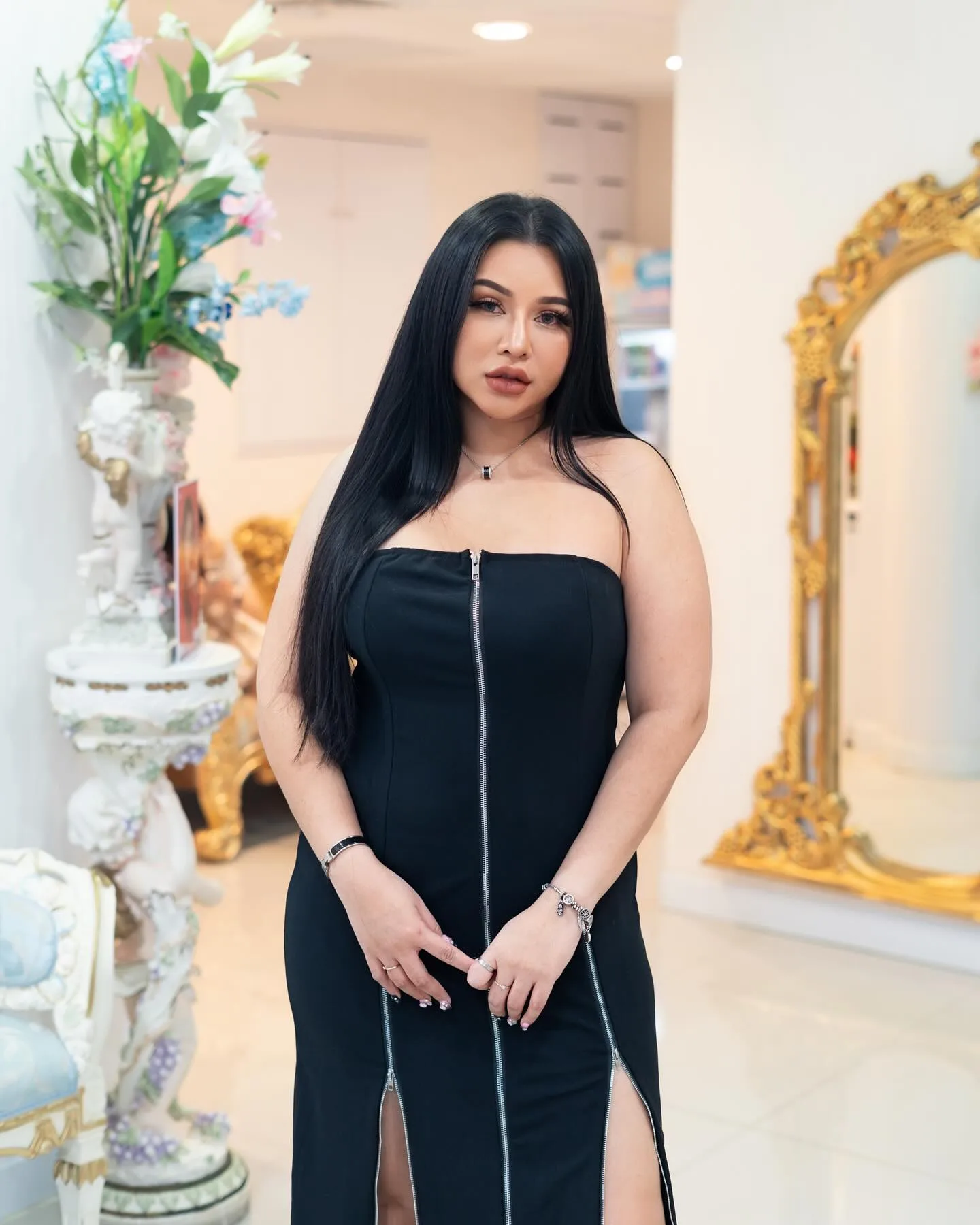 Her confidence wraps around you. Meanwhile, her gaze holds steady, and her lips lift in a quiet tease. Her walk shows smooth control and full grace. Then, her eyes meet yours, and everything else fades for a moment. She shines with raw appeal and pure softness.